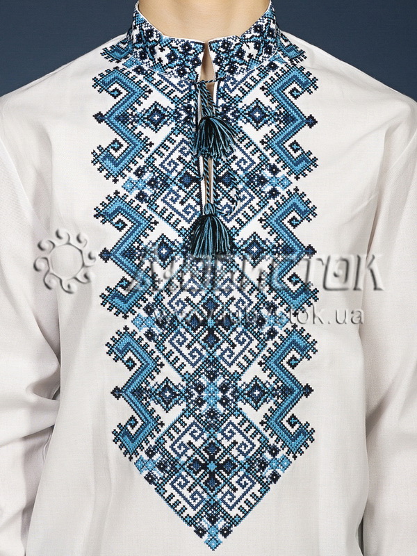Вишита сорочка чоловіча - вишиванка хрестиком С 25-4 на домотканному полотні або натуральному льоні. Візерунок-оберіг в українському гуцульському стилі акриловими нитками. Традиційний крій сорочки на довгий рукав з коміром-стійкою. Вишивка на грудях, кінцях рукавів, комірі.