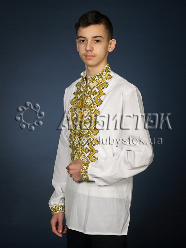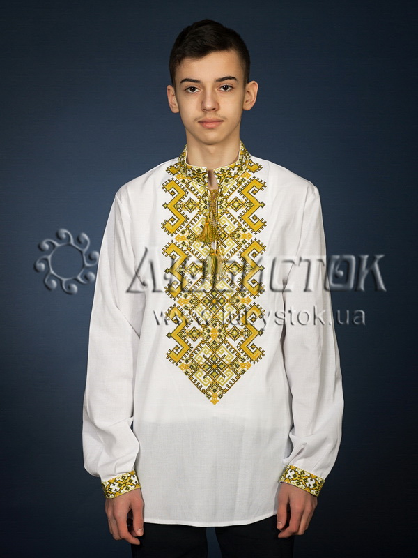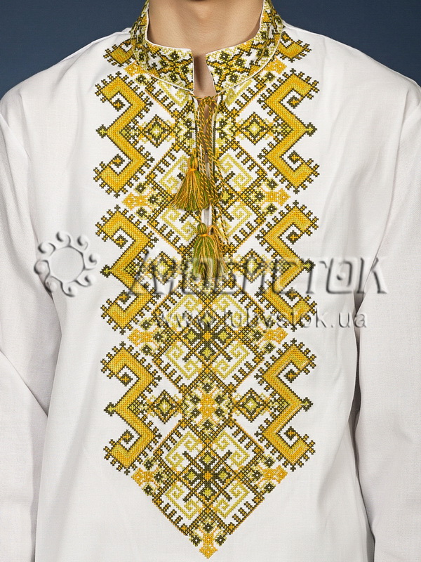 <Вишита сорочка чоловіча - вишиванка хрестиком С 25-6 на домотканному полотні або натуральному льоні. Візерунок-оберіг в українському гуцульському стилі акриловими нитками. Традиційний крій сорочки на довгий рукав з коміром-стійкою. Вишивка на грудях, кінцях рукавів, комірі.
