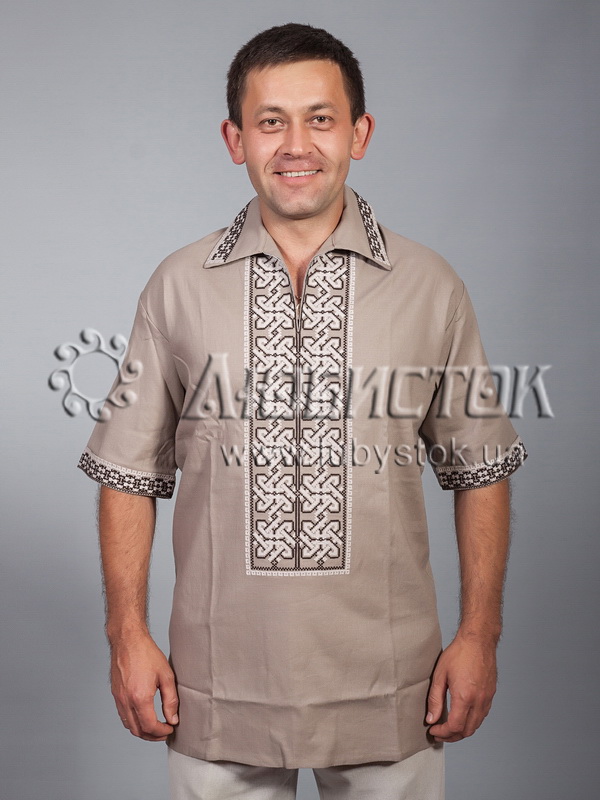 Вишита сорочка чоловіча - вишиванка хрестиком ЧСВ 31-6. Завдяки кольору тканини та відкладному коміру сорочка має сучасний та оригінальний вигляд. Традиційний український крій сорочки з натурального льону кольору кава з молоком. Вишиванка виконана хрестиком беживими та коричнивими акриловими нитками, геометричним візерунком. Рукав короткий, комір відкладний. Вишивка на грудях, рукавах та комірі. Чудово підійде як для святкових так і для днів коли хочеться гарно виглядти.