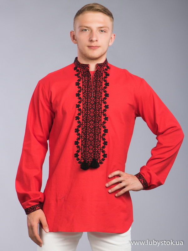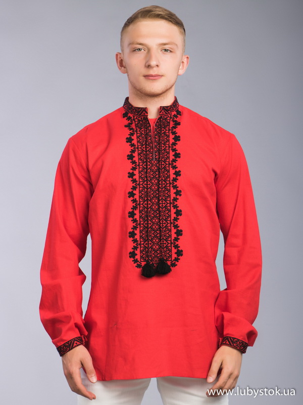 Вишита сорочка чоловіча - вишиванка хрестиком С 62-1. Завдяки фасону та кольору тканини має сучасний та стильний вигляд. Традиційний український крій сорочки з червоного натурального льону. Вишиванка виконана чорними акриловими нитками, геометричним візерунком. Рукав довгий з коміром-стійкою. Вишивка на грудях, рукавах та комірі-стійці. Чудово підійде для літнього теплого дня, як для святкових так і для будніх днів.