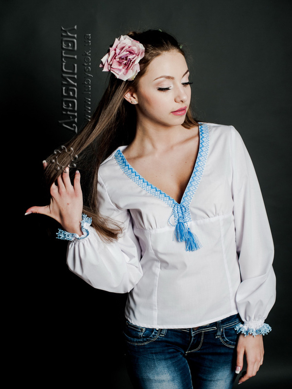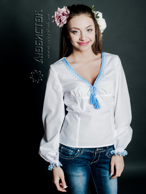 Вишиванка 103-55 з тендітним орнаментом в блакитних тонах стане чудовим доповненням у гардеробі кожної жінки.