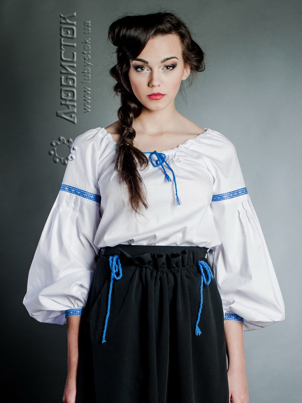 Чудова вишита жіноча блуза ЖБ 107-58 колоритного фасону. Відкрите декольте, глибину якого можна регулювати зав’язками. Довгі об’ємні рукава, що увінчуються вишитими манжетами, за допомогою яких рукав можна підтягувати до потрібної висоти. Вільний силует додасть впевненості у собі. У такій вишиванці ви забудете про маленькі недоліки фігури і почуватимете себе комфортно за будь-якої погоди. Залишайтесь завжди неповторною!