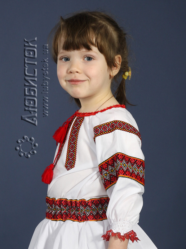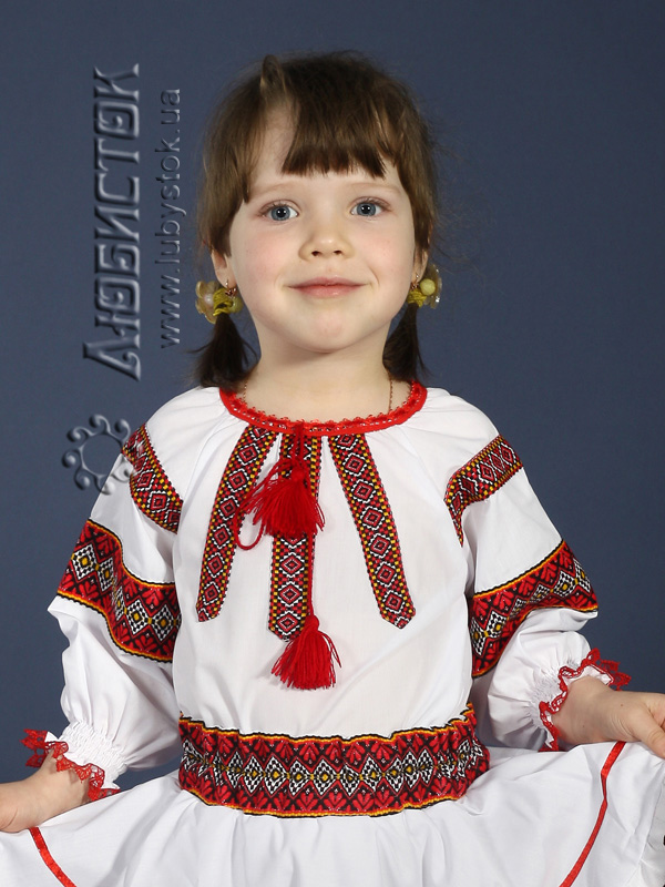 Українська вишиванка для дівчинки - вишита блузочка - модель ЖБ 88-44. Вишивка ткана, червоними, чорними та білими акриловими нитками. Візерунок 44 - геометричний. Тканина якісна біла сорочкова.