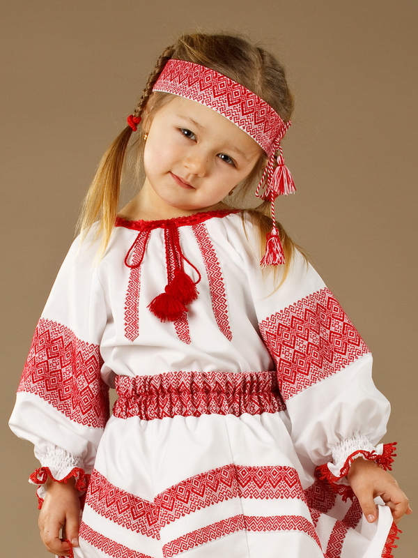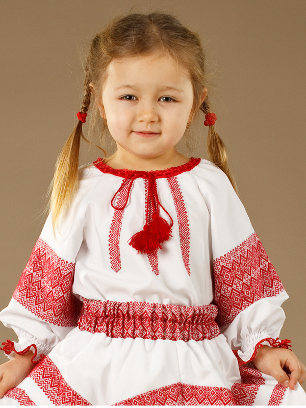 Українська вишиванка для дівчинки - вишита блузочка - модель ЖБ 94-11. Вишивка ткана, червоними та білими акриловими нитками. Візерунок 11 - геометричний. Тканина якісна біла сорочкова.