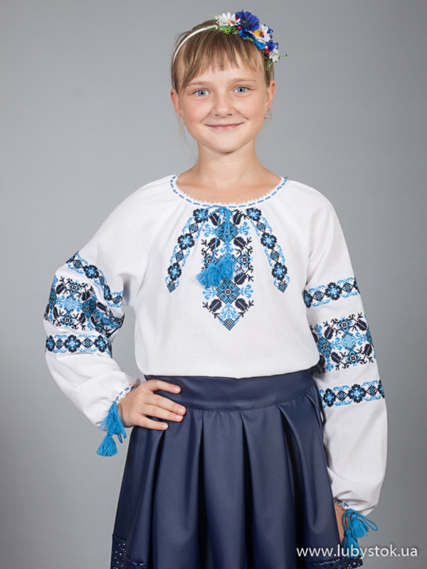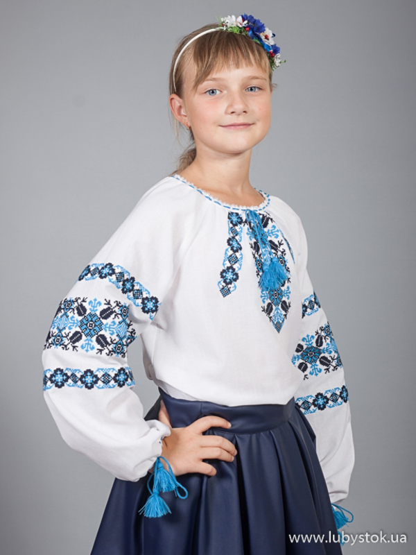 Дитяча вишита блуза - українська вишиванка для дівчинки хрестиком ЖБВ 15-3 - www.lubystok.ua.