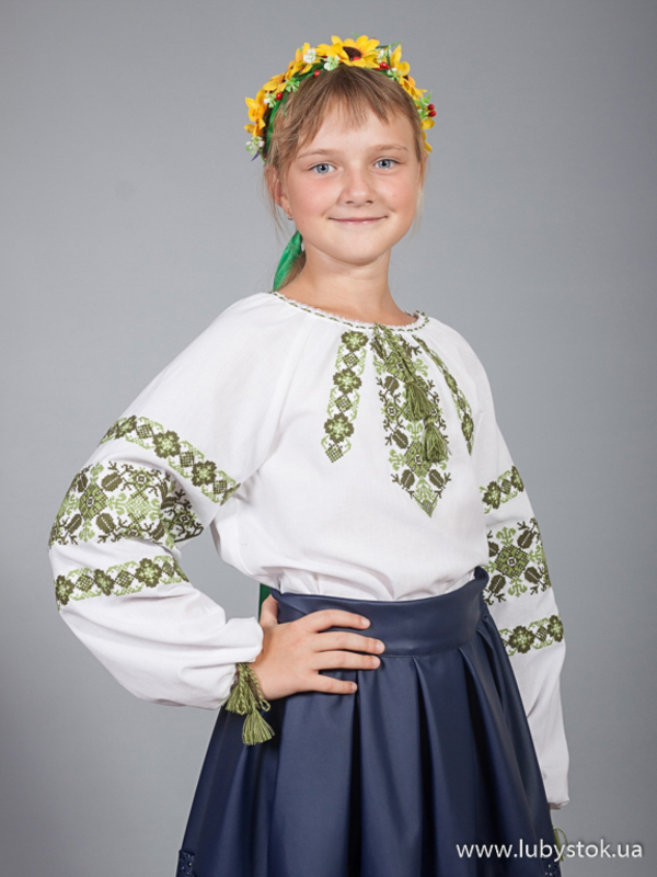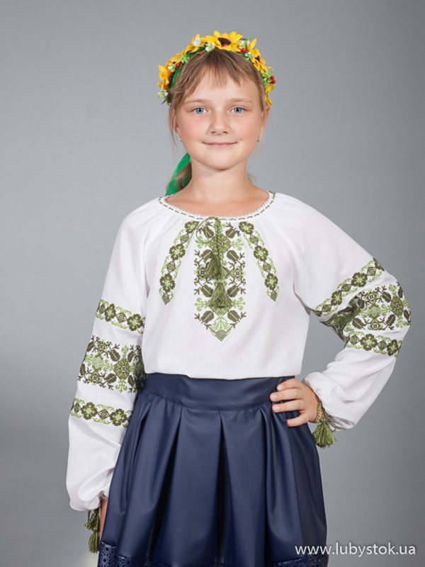 Дитяча вишита блуза - українська вишиванка для дівчинки хрестиком ЖБВ 15-5 - www.lubystok.ua.