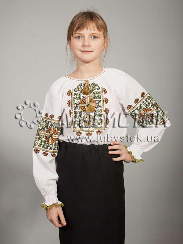 Дитяча вишита блуза - українська вишиванка для дівчинки хрестиком ЖБВ 19-1 - www.lubystok.ua.