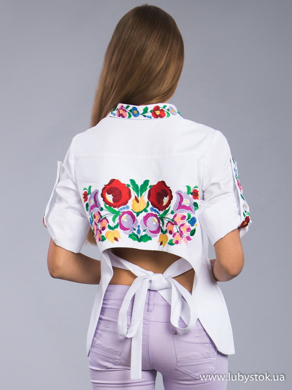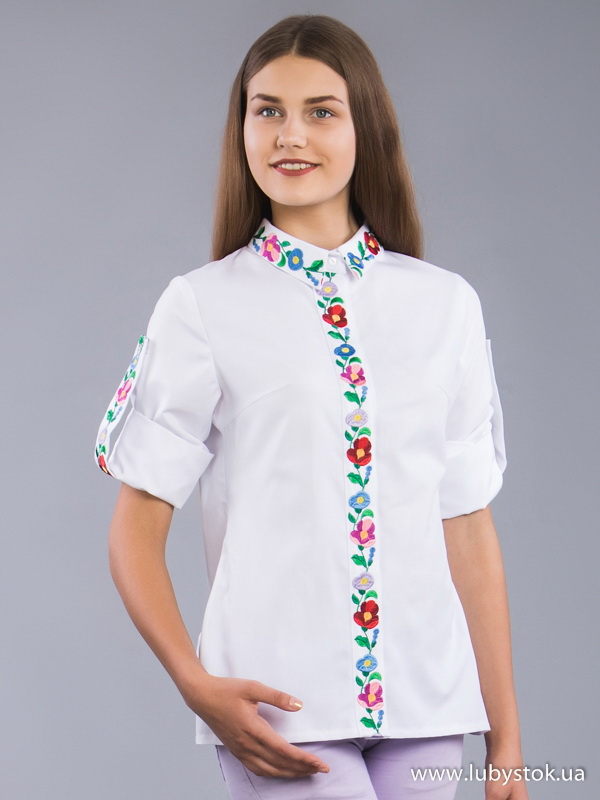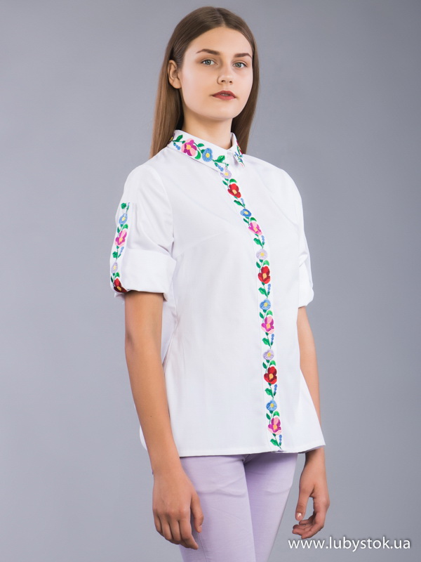 Чудова дизайнерська вишита блуза гладдю з сучасними мотивами крою в українському стилі з рослинним орнаментом - www.lubystok.ua.