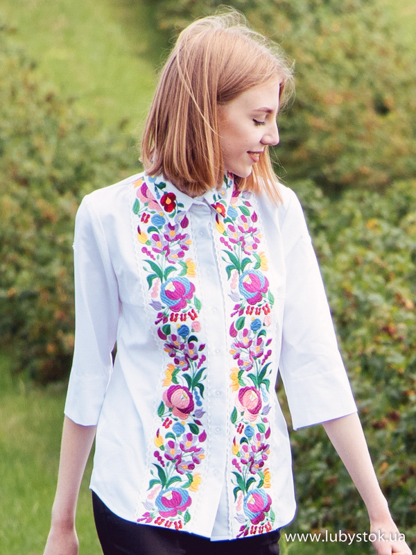 Чудова дизайнерська вишита блуза гладдю з сучасними мотивами крою в українському стилі з рослинним орнаментом - www.lubystok.ua.