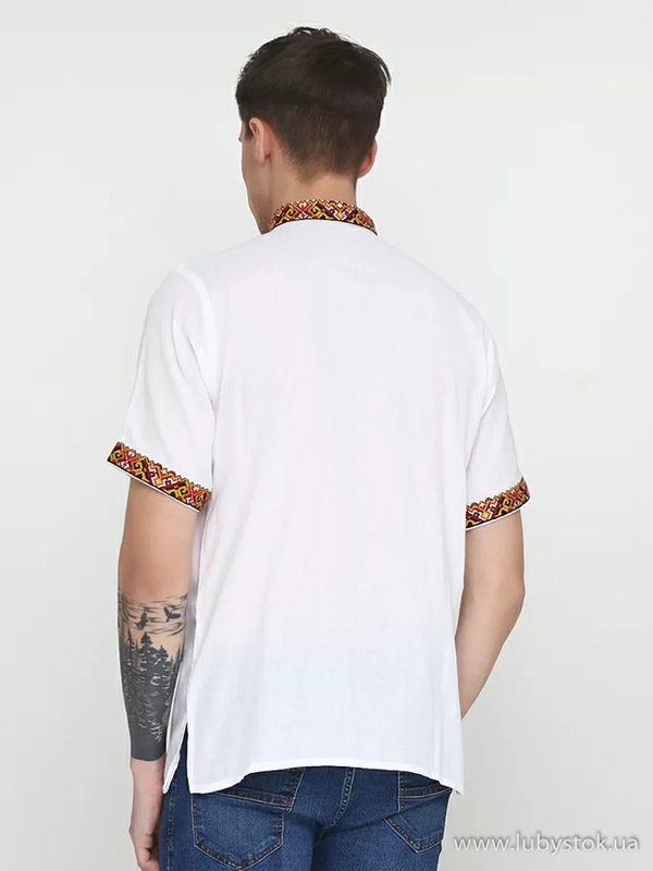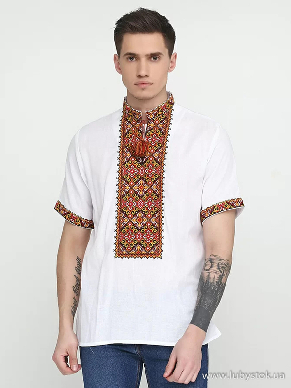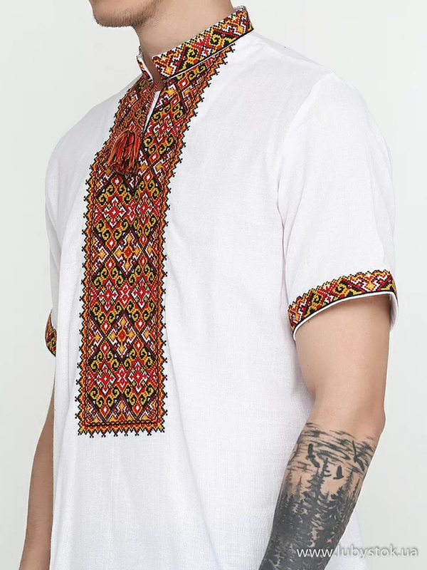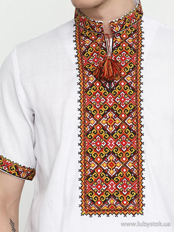 Вишиванка - вишита хрестиком чоловіча сорочка на льоні С 15-1. Багатий візирунок та підібрані кольори надають цій сорочці роскішний вигляд. Традиційний український крій сорочки з білої домотканої тканини або натурального льону. Вишиванка виконана хрестиком червоними та чорними акриловими нитками, геометричним візерунком. На довгий рукав з коміром-стійкою. Вишивка на грудях, манжетак та комірі-стійці. Чудово підійде для національних свят та урочистих подій. Надасть вам особливого вигляду.