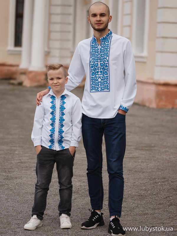 Комплект сімейних вишиванок в одному стилі F-001: вишиванка для тата S-076-01 та вишиванка для сина S-086-01-d.