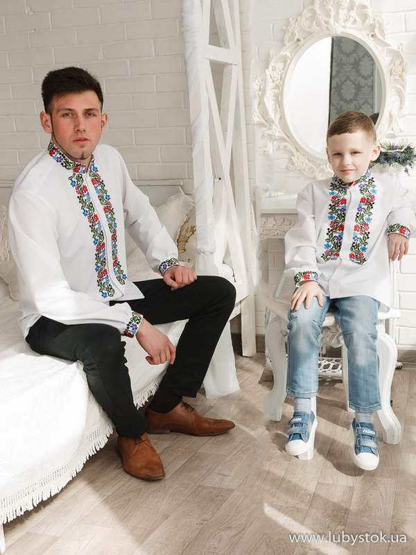 Комплект сімейних вишиванок в одному стилі F-003: вишиванка для тата S-096-01 та вишиванка для сина S-096-01-d.
