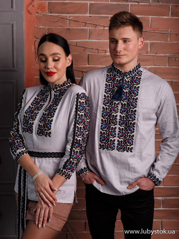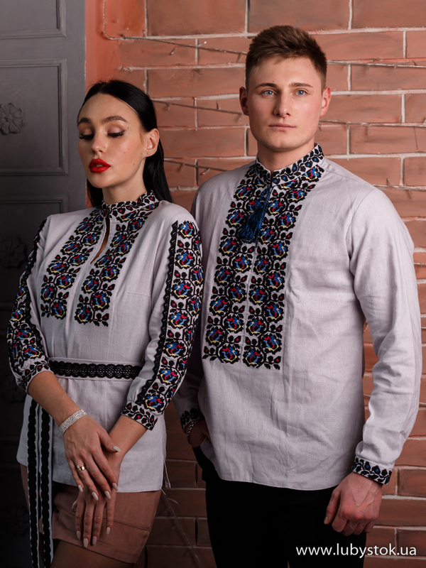 Комплект парних вишиванок P-005: чоловіча вишиванка S-074-01 та вишита блуза B-065-01.