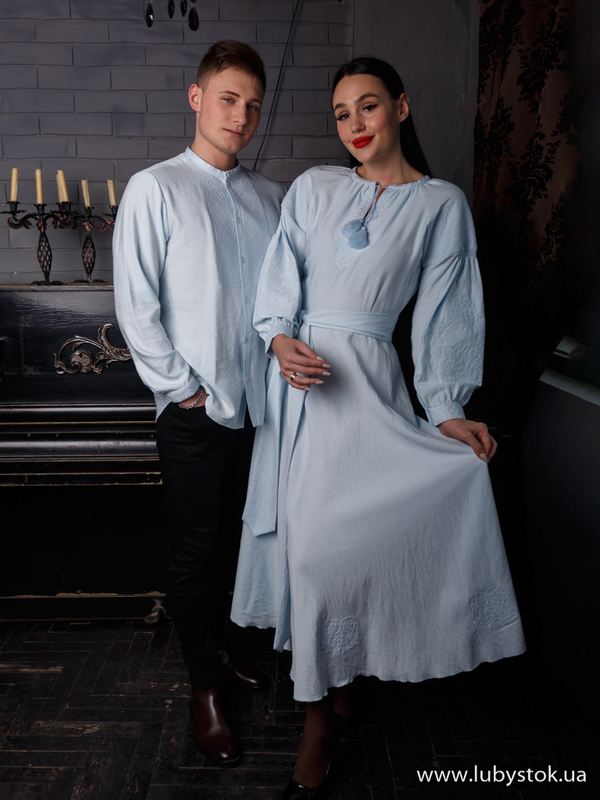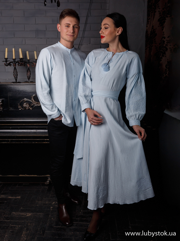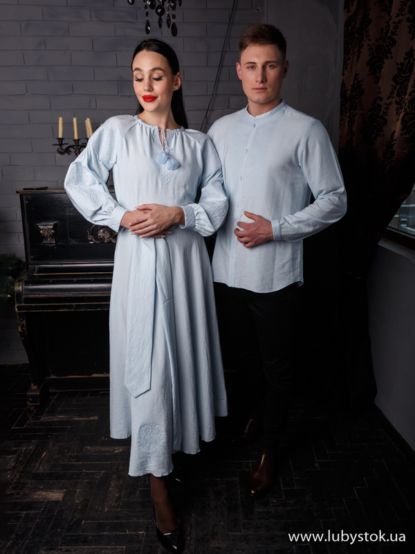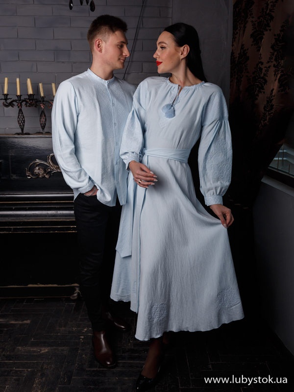 Комплект парних вишиванок P-007: чоловіча вишиванка S-102-01 та вишите плаття D-124-01.