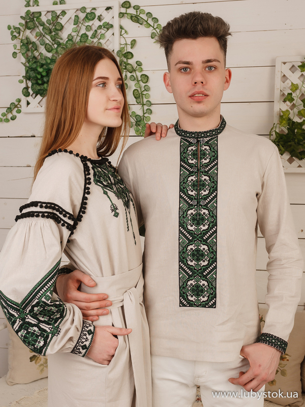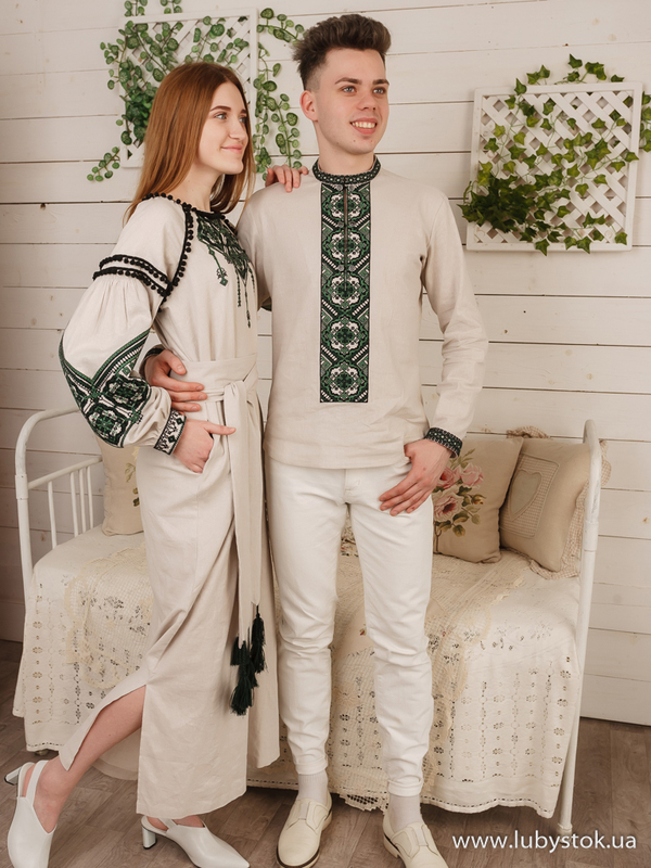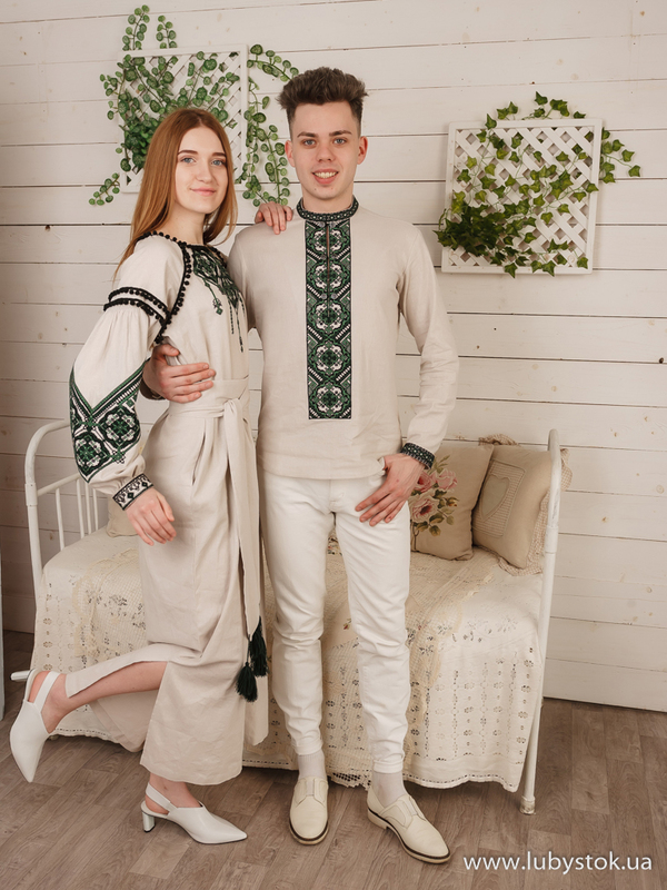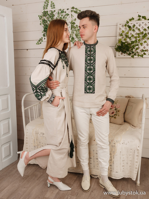 Комплект парних вишиванок P-010: чоловіча вишиванка S-110-01 та вишите плаття D-103-01.