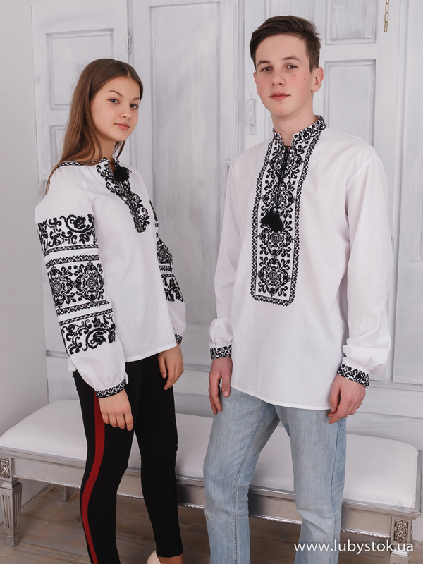 Комплект парних вишиванок P-014: чоловіча вишиванка S-109-01 та вишита блуза B-064-01.