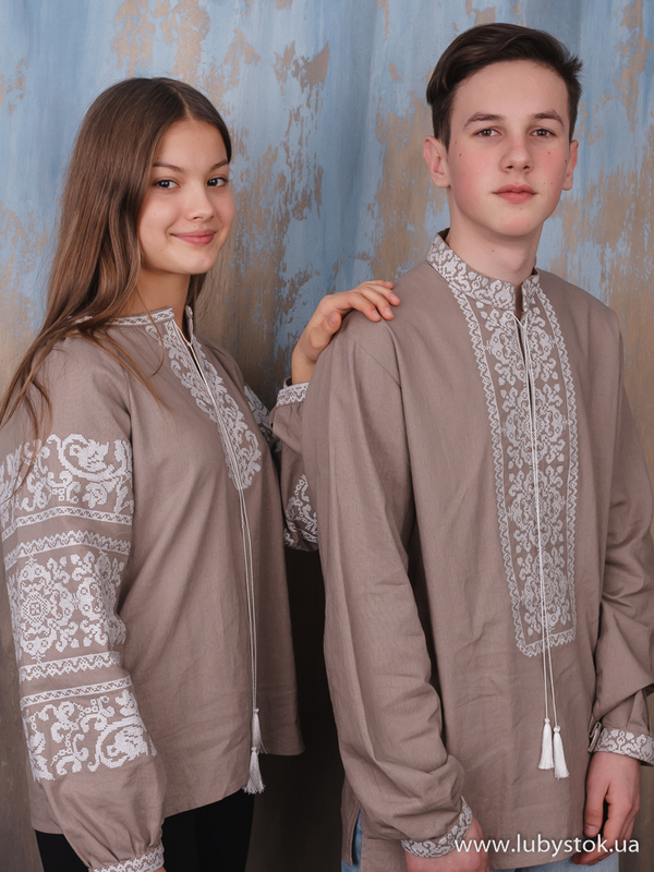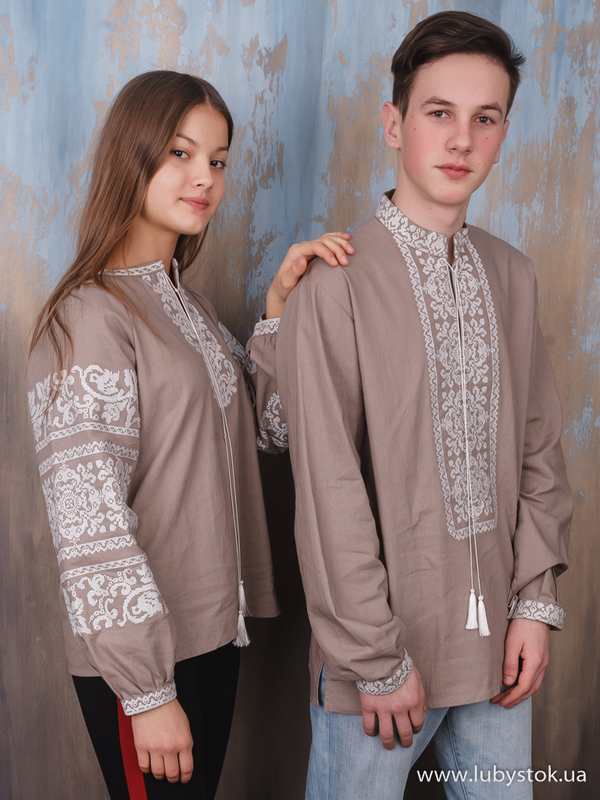 Комплект парних вишиванок P-015: чоловіча вишиванка S-109-02 та вишита блуза B-064-02.