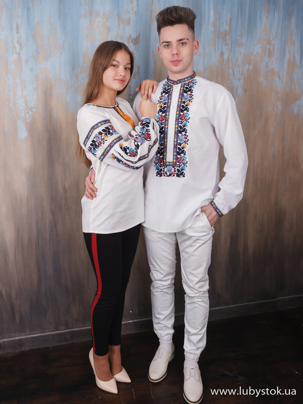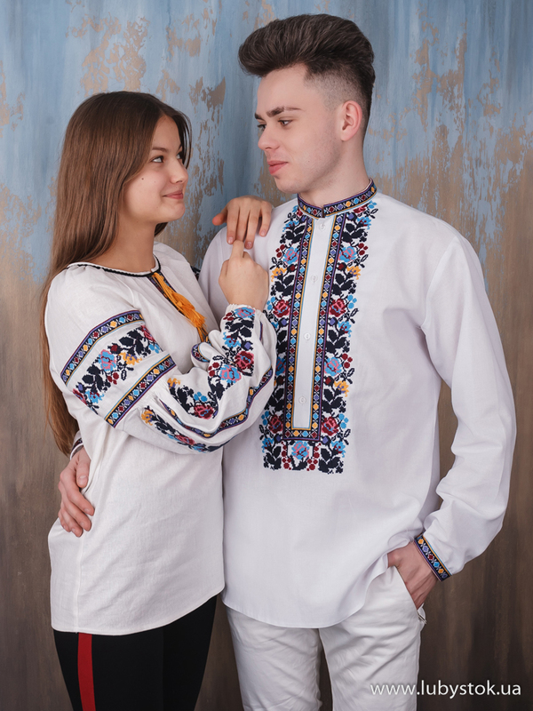 Комплект парних вишиванок P-016: чоловіча вишиванка S-113-01 та вишита блуза B-077-01.