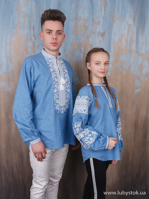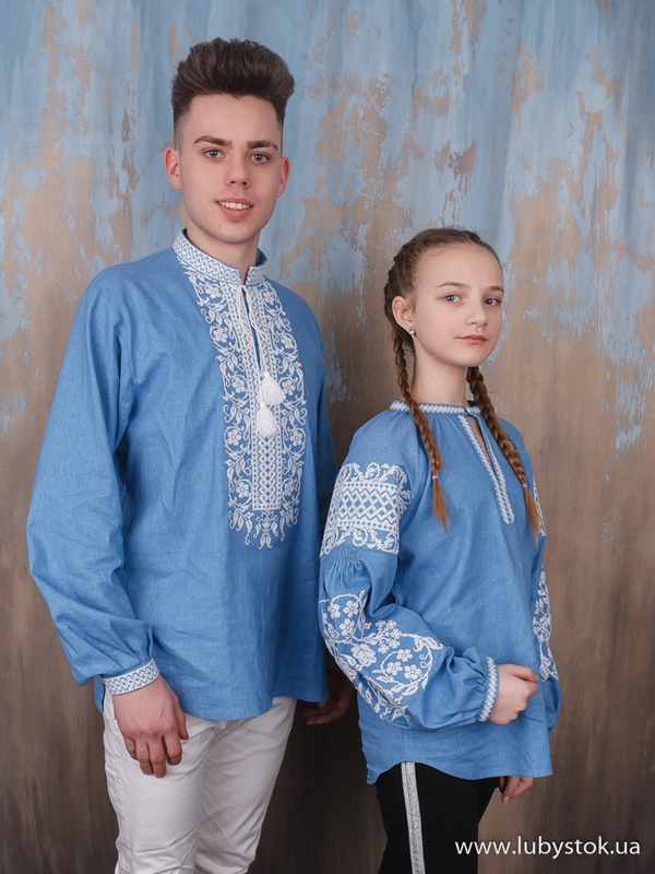 Комплект парних вишиванок P-018: чоловіча вишиванка S-054-01 та вишита блуза B-057-01.