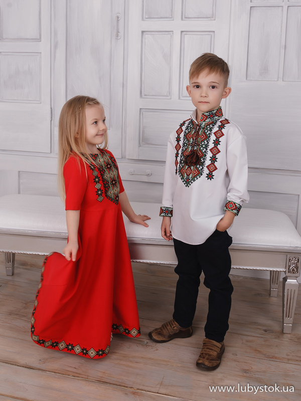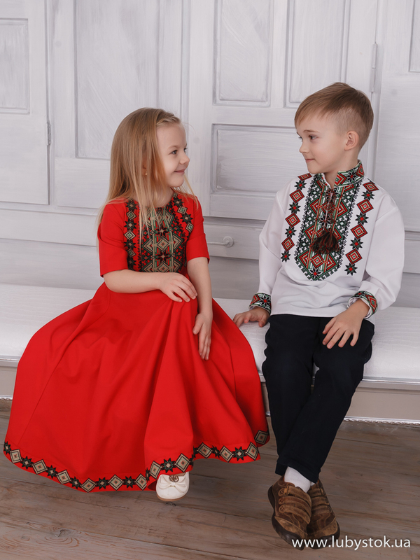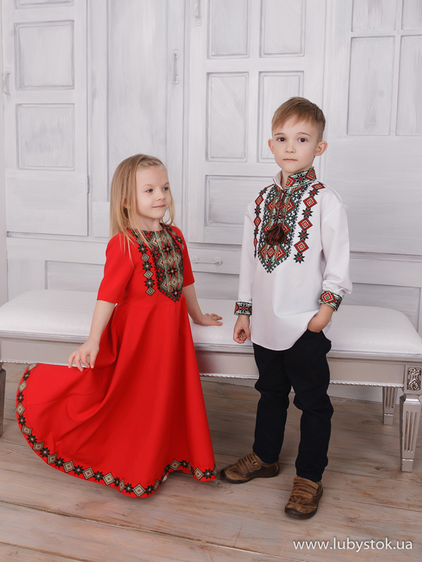 Комплект парних вишиванок P-019: чоловіча вишиванка S-088-01-d та вишита сукня D-112-01-d.