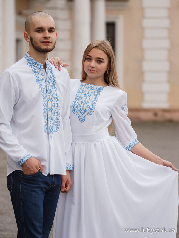 Комплект парних вишиванок P-020: чоловіча вишиванка S-083-01 та вишите плаття D-088-01.