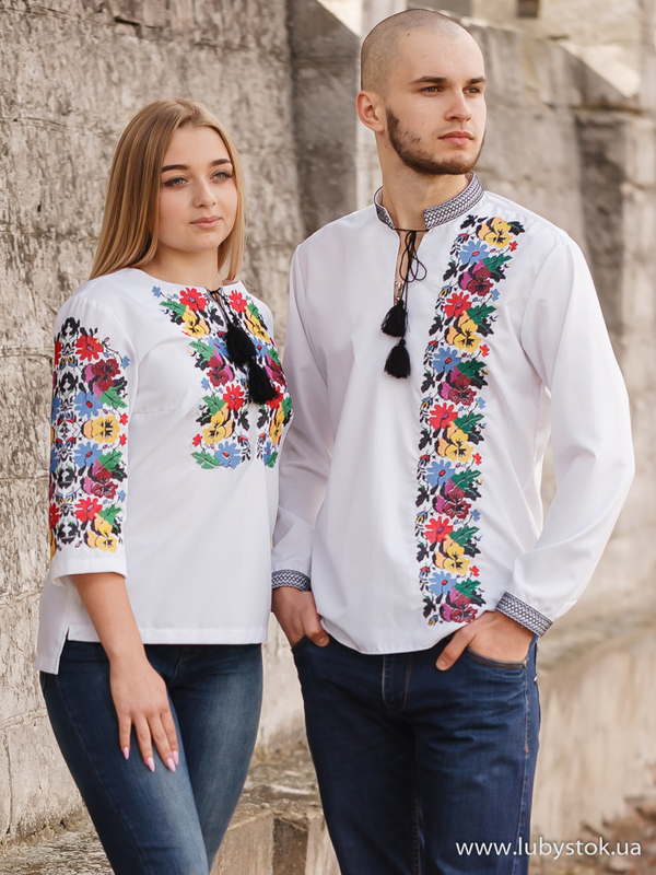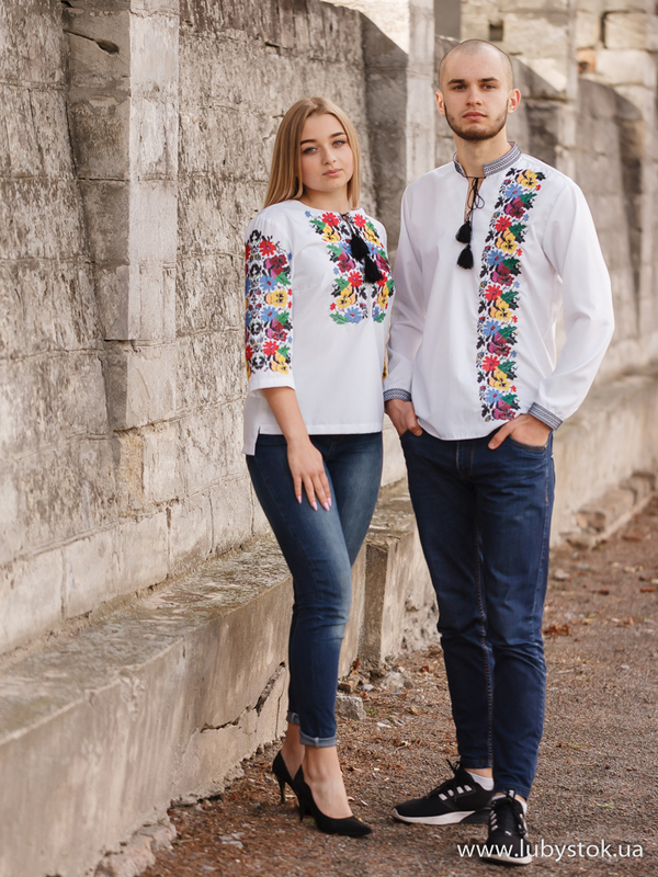 Комплект парних вишиванок P-021: чоловіча вишиванка S-081-01 та вишита блуза B-058-01.
