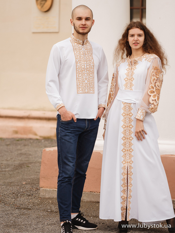 Комплект парних вишиванок P-023: чоловіча вишиванка S-076-04 та вишите плаття D-082-04.