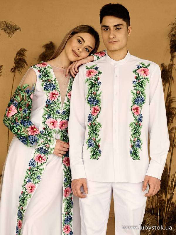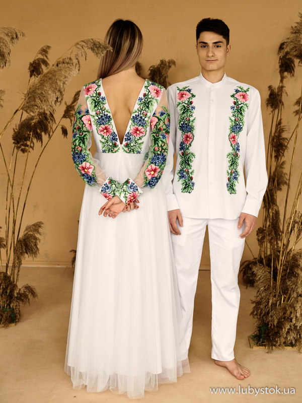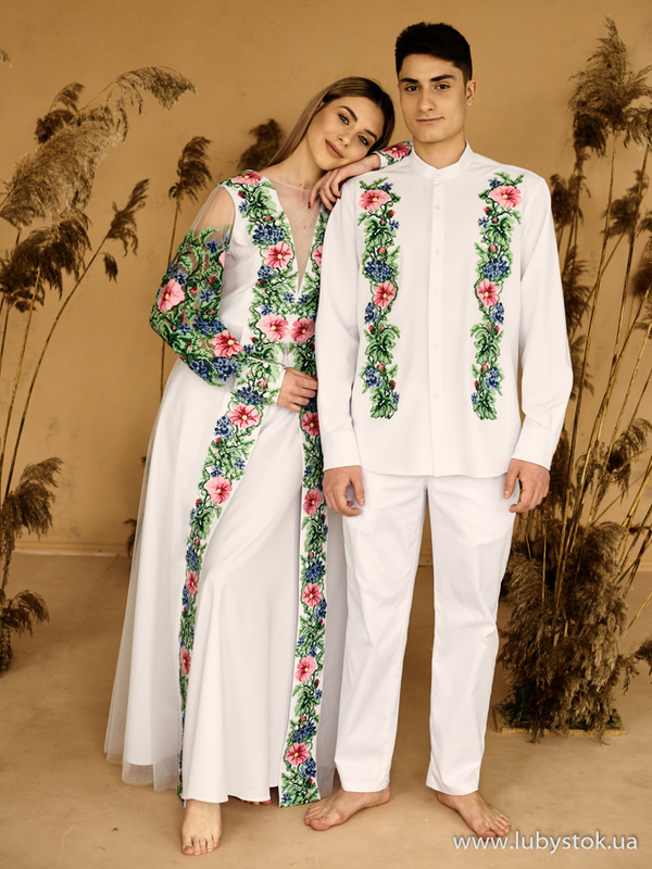Комплект парних вишиванок P-029: чоловіча вишиванка S-124-01 та вишите плаття D-134-01.