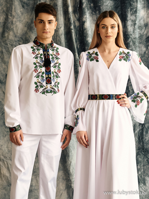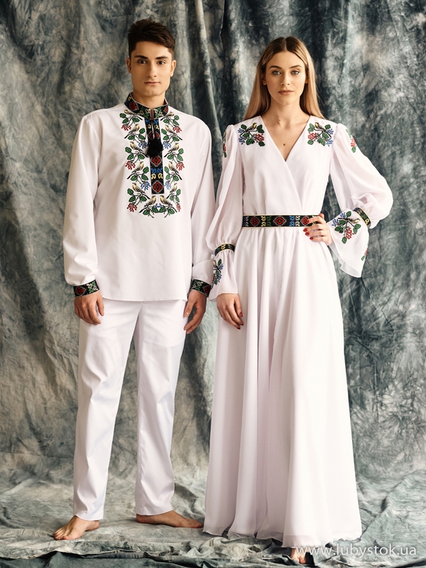 Комплект парних вишиванок P-034: чоловіча вишиванка S-121-01 та вишите плаття D-132-01.