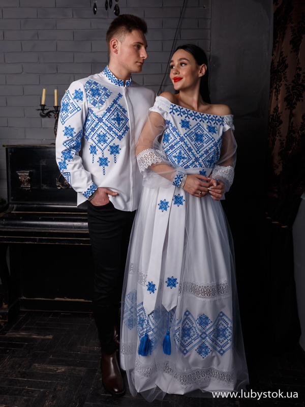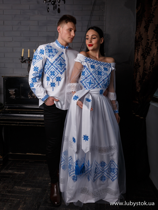 Комплект парних вишиванок P-035: чоловіча вишиванка S-111-02 та вишите плаття D-131-02.